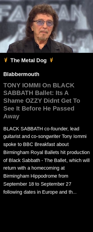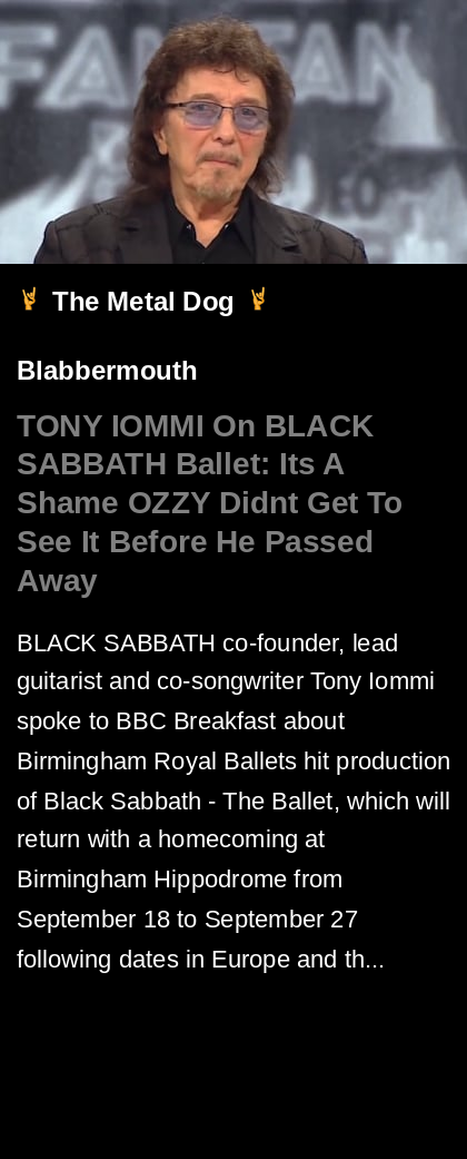 #TONYIOMMI #BLACKSABBATH #Ballet #EP #guitarist #Blabbermouth #metal #music