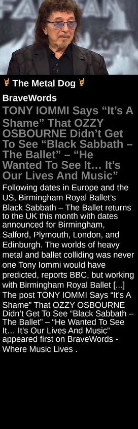 TONY IOMMI Says “It’s A Shame” That OZZY OSBOURNE Didn’t Get To See “Black Sabbath – The Ballet” – “He Wanted To See It… It’s Our Lives And Music”