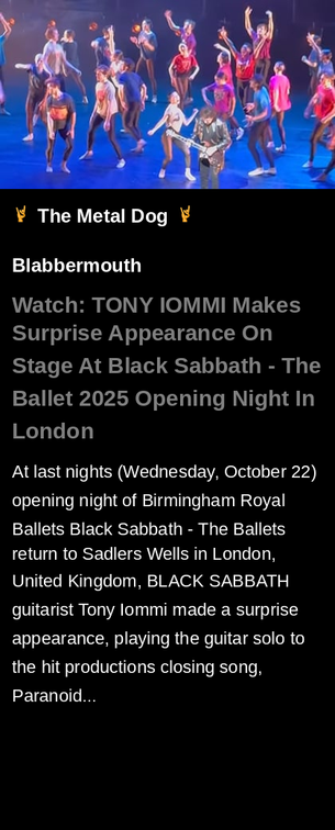 Watch: TONY IOMMI Makes Surprise Appearance On Stage At 'Black Sabbath - The Ballet' 2025 Opening Night In London