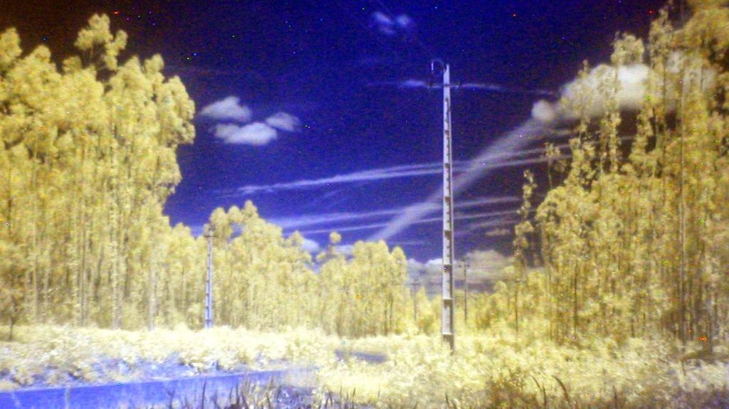 I took the Camedia C-100 on a walk around the block, along with a tripod and a collection of filters. My intention was to try to make some digital trichromes and aerochromes, with red, green, blue, and infrared filters, but looking at the images from the red filter I reckon that the sensor has deteriorated even further and it seems to be even more infrared-sensitive. This did actually have some benefits in that red/blue channel mixed images came out wonderfully, but the images are now full of artefacts. Of course, I’m perfectly happy with that, the more glitchy this camera becomes, the better.
