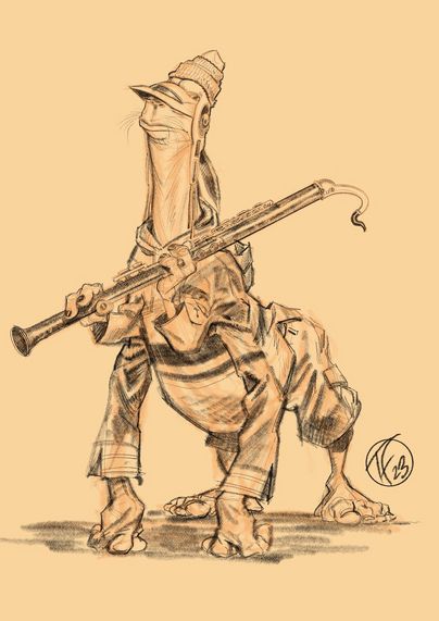 Recent #tvdoodle, “woodwind”.