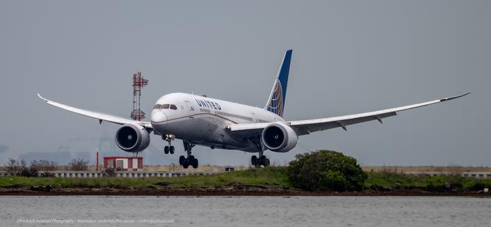 United Airlines 787 about to touch down at San Francisco International , January 2024 #aviationphotography #planespotting #AvGeek #spotter #aviationdaily #photography #aircraft #Nikon #UnitedAirlines #UAL #B787 #ksfo #nikon #nikonphotgraphy