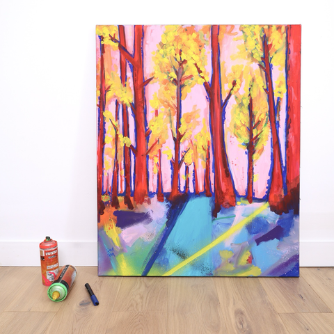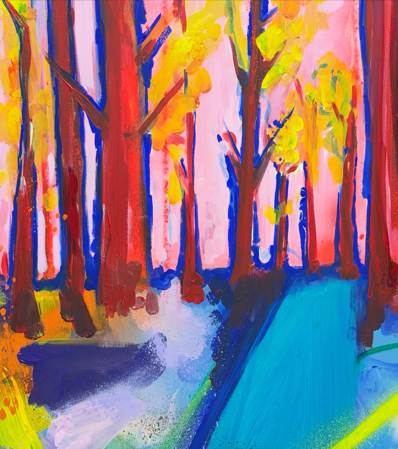 Cette œuvre peinte a partir d’une photo prise à @messanges.landes dans les Landes en octobre 2024 résonne avec le morceau « Les arbres rouges » de @brumeparole .