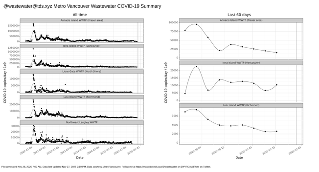 Metro Vancouver wastewater COVID surveillance data was published November 27. The most recent test was November 16. #covid #covid19 #wastewater #vancouver #yvr