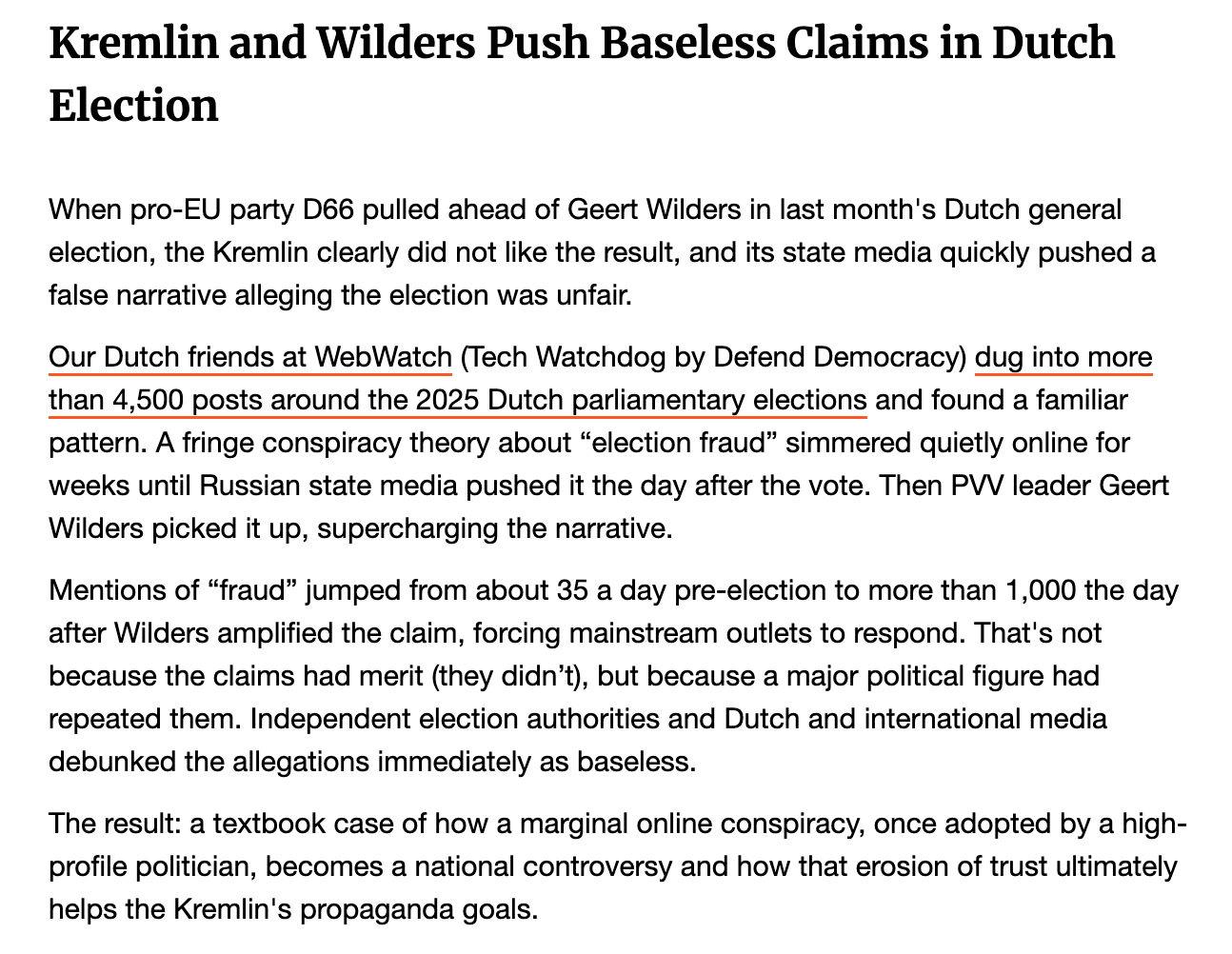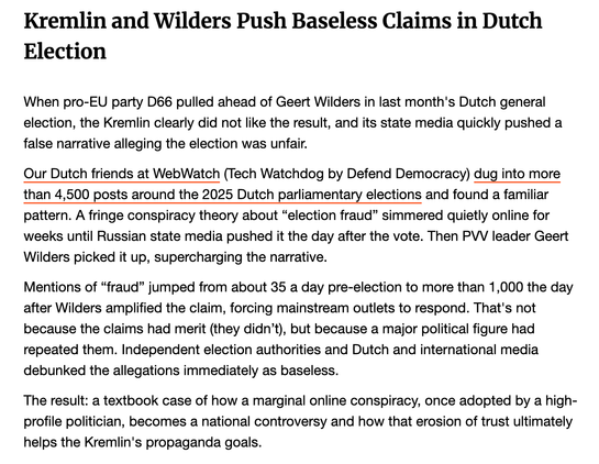 'Kremlin and Wilders Push Baseless Claims in Dutch Election'