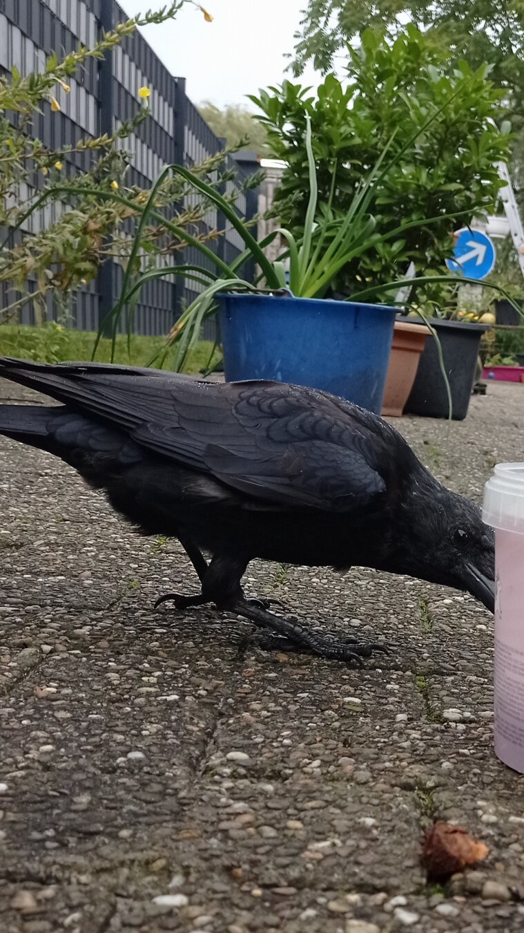 Die Krähen ärgern laufden die anderen Flieger vom Flugfeld