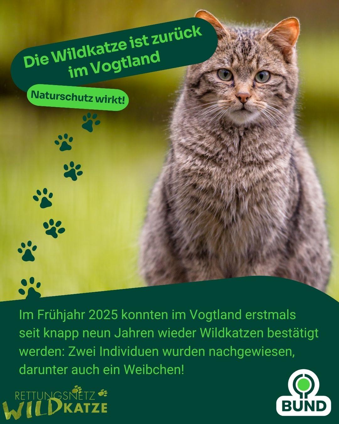 🐾 Die Wildkatze ist zurück im Vogtland! Zum ersten Mal seit 9 Jahren gibt es wieder Nachweise – gleich zwei Tiere, darunter ein Weibchen. 🌳 Ein wichtiger Erfolg für den Naturschutz, denn die Wildkatze steht für viele bedrohte Waldarten.