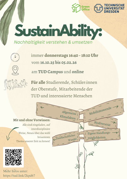 EMPFEHLUNG ++ 16.10.2025 bis 5.2.2026 ++ @tuuwi: Vorlesungsreihe "SustainAbility – Nachhaltigkeit verstehen & umsetzen"