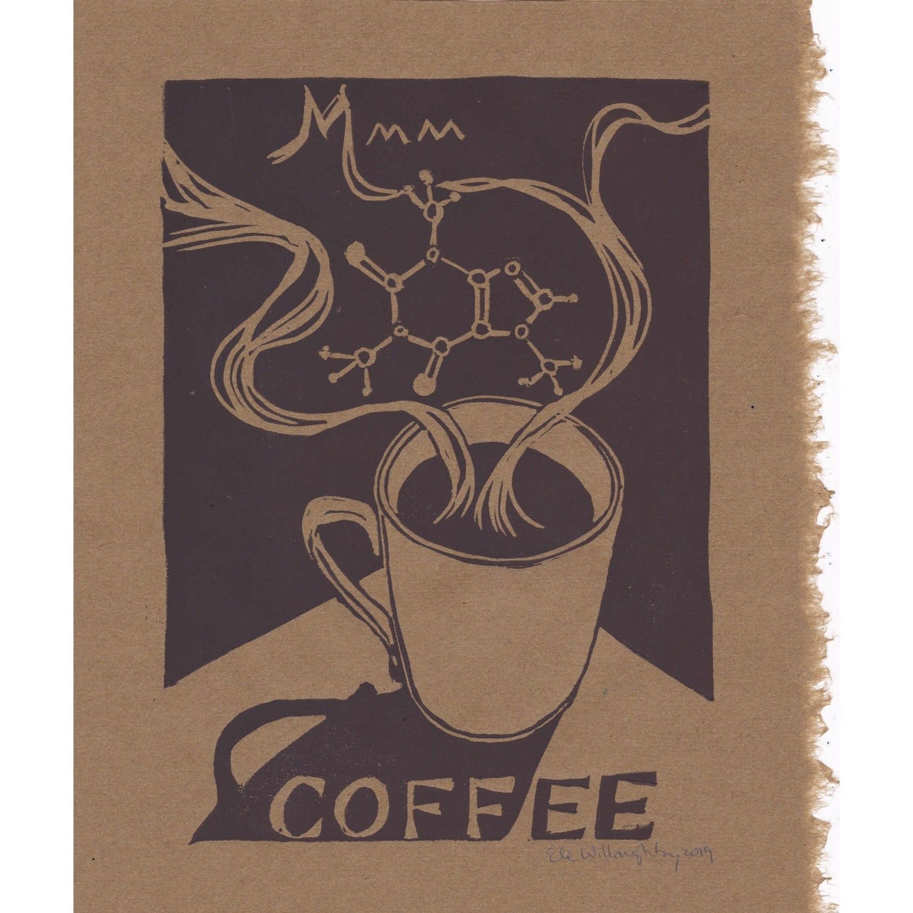 #coffee #linocut #printmaking #chemistry #sciArt #molecule #caffeine #washi