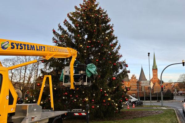 Startklar für den Weihnachtsmarkt https://www.hl-live.de/text.php?id=176382&utm_source=dlvr.it&utm_medium=mastodon #Weihnachtsmarkt #Lübeck #Holstentor #Weihnachtsbeleuchtung #KotkaTanne