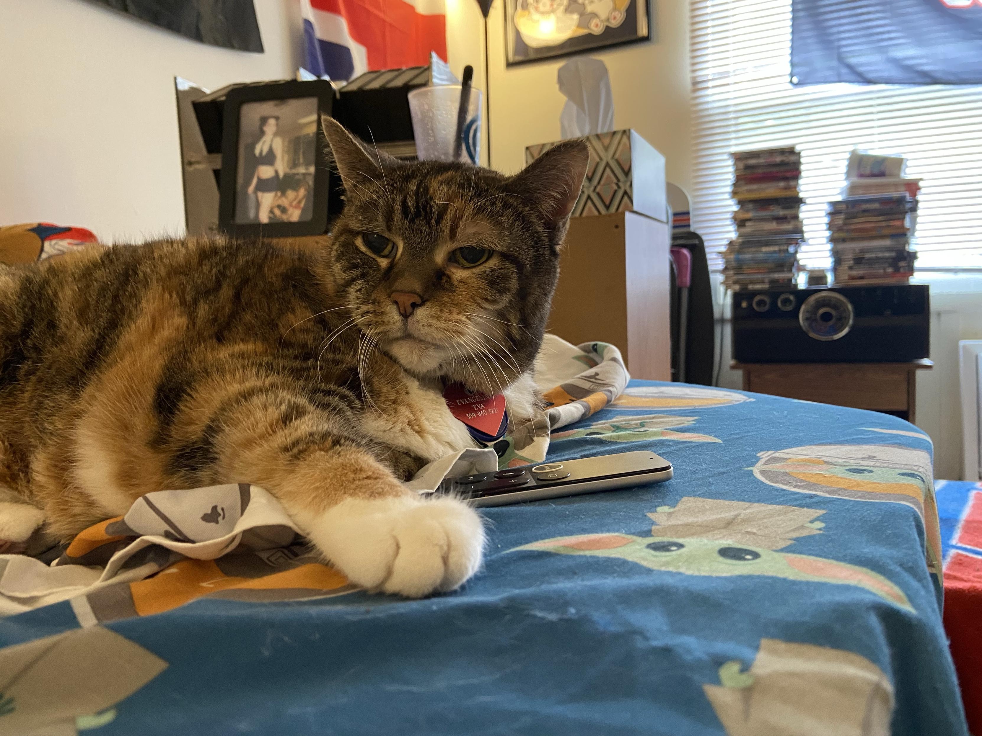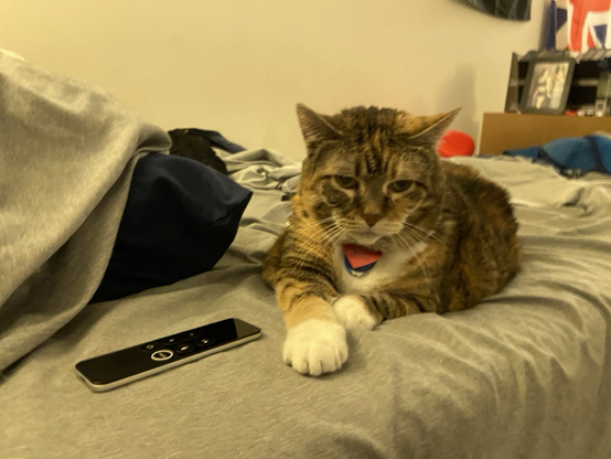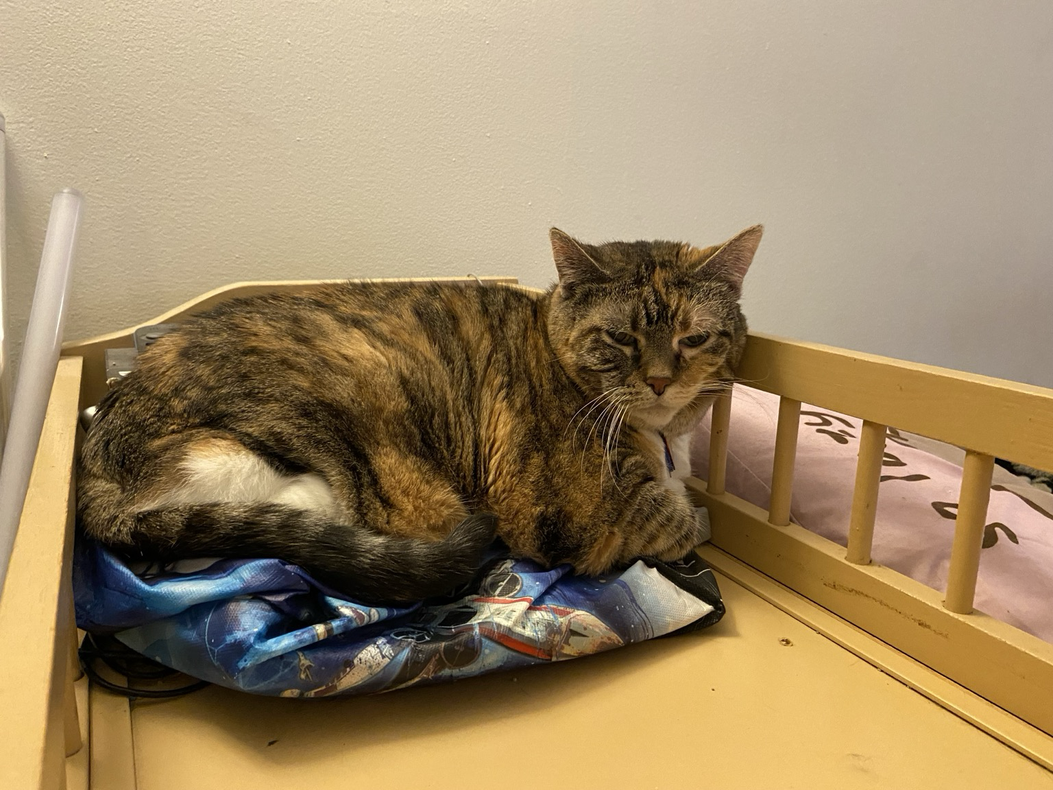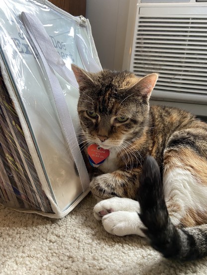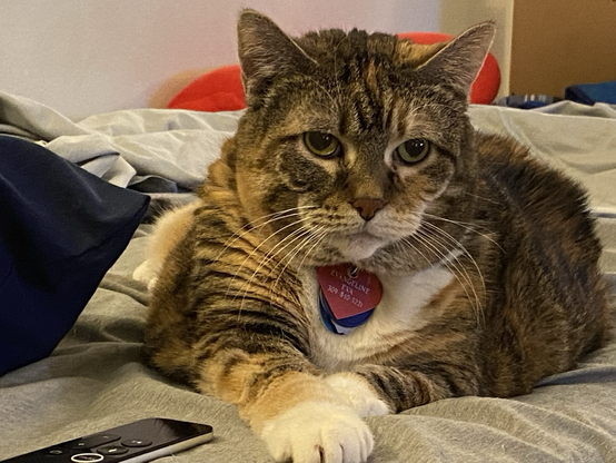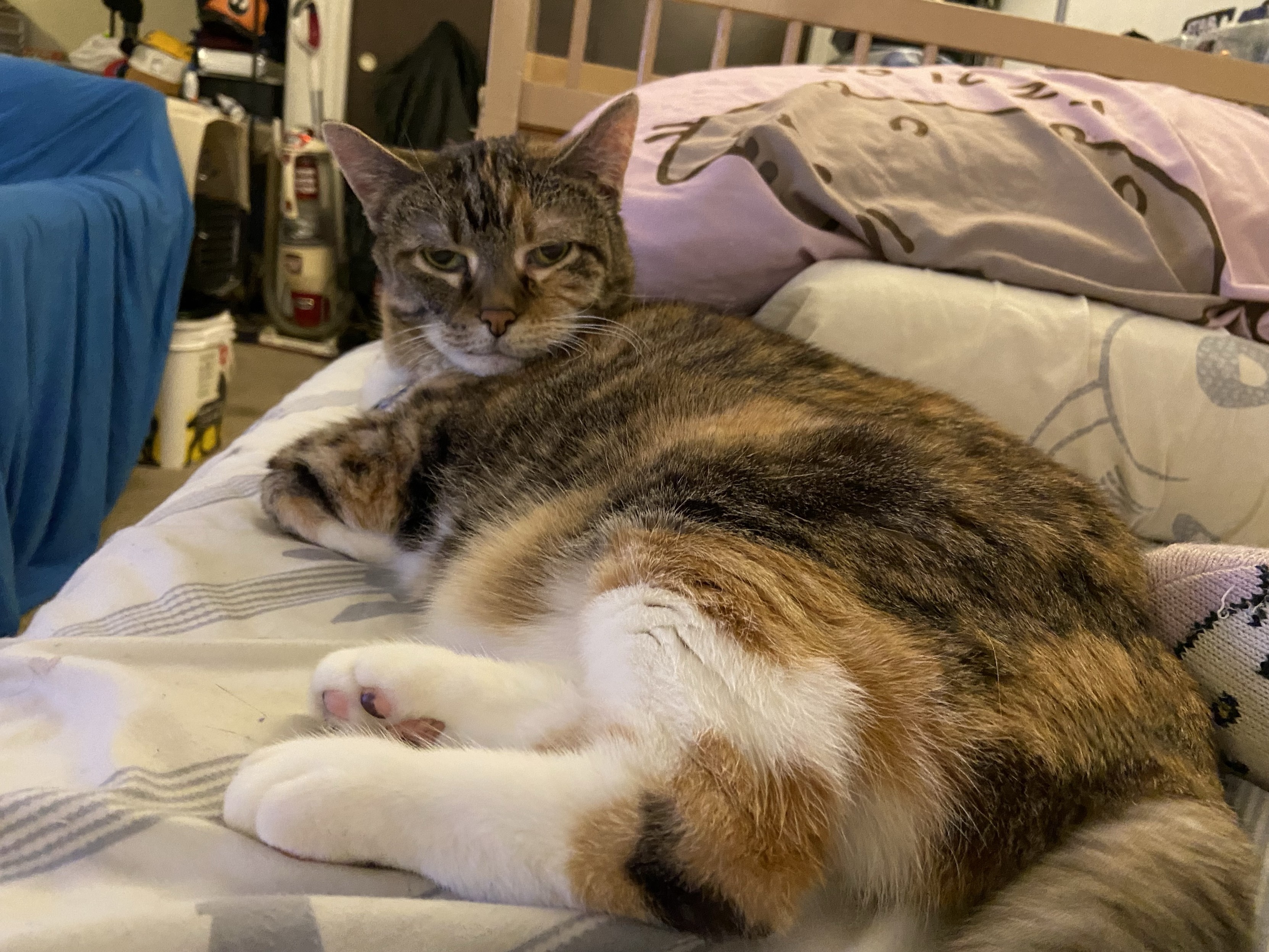 Eva the #QueenKitty from her previous vet visit. Damn the vets were quick to make this 17 year-old #feline a #purrito. This is from about a month ago. I was afraid she’d get upset if she looked over my shoulder as I post these. #cats #queenkitty👑 #felinelove #whiskerweekend #CatsOfMastodon #catsunited #catstodon #catsofthefediverse