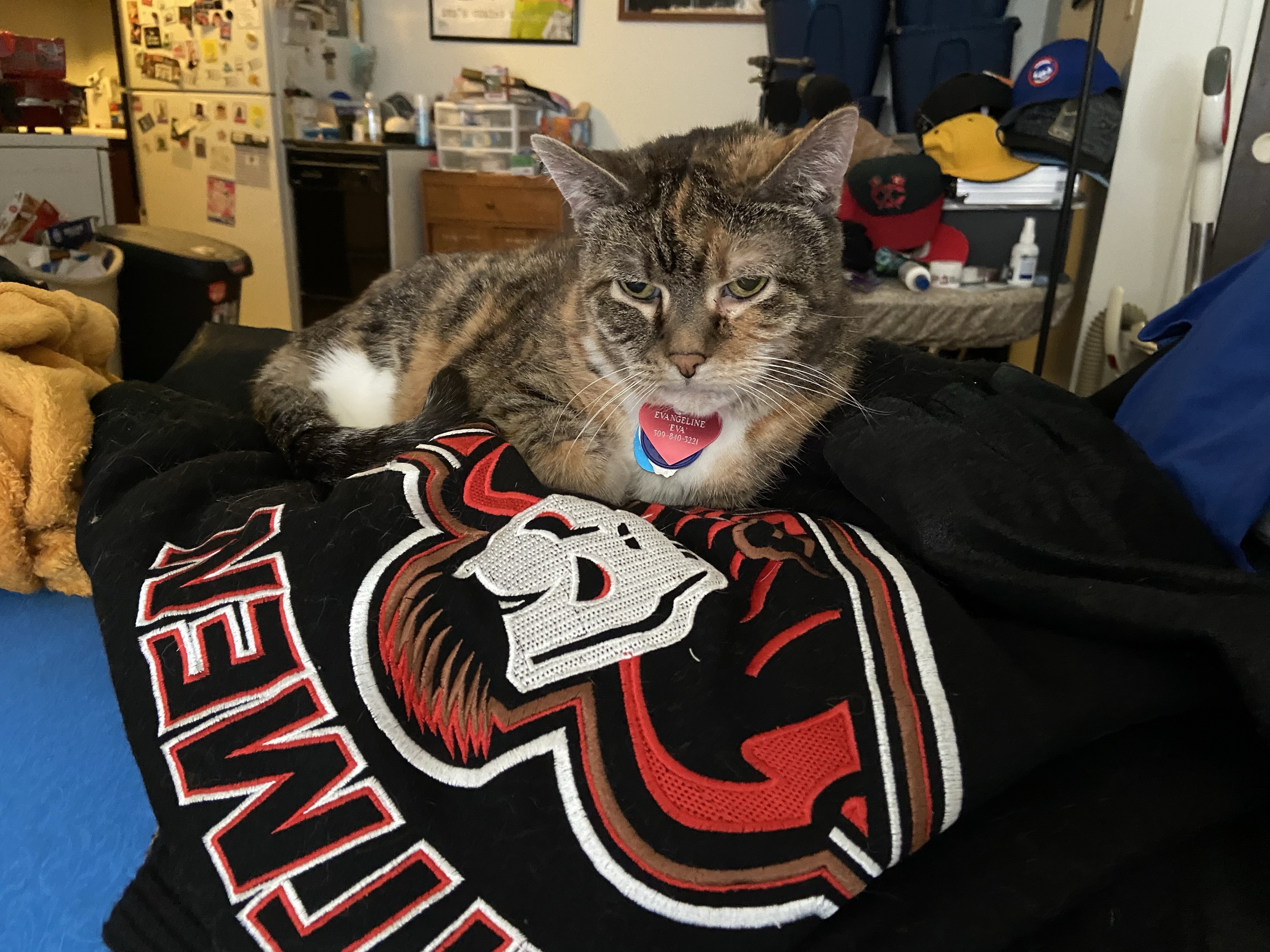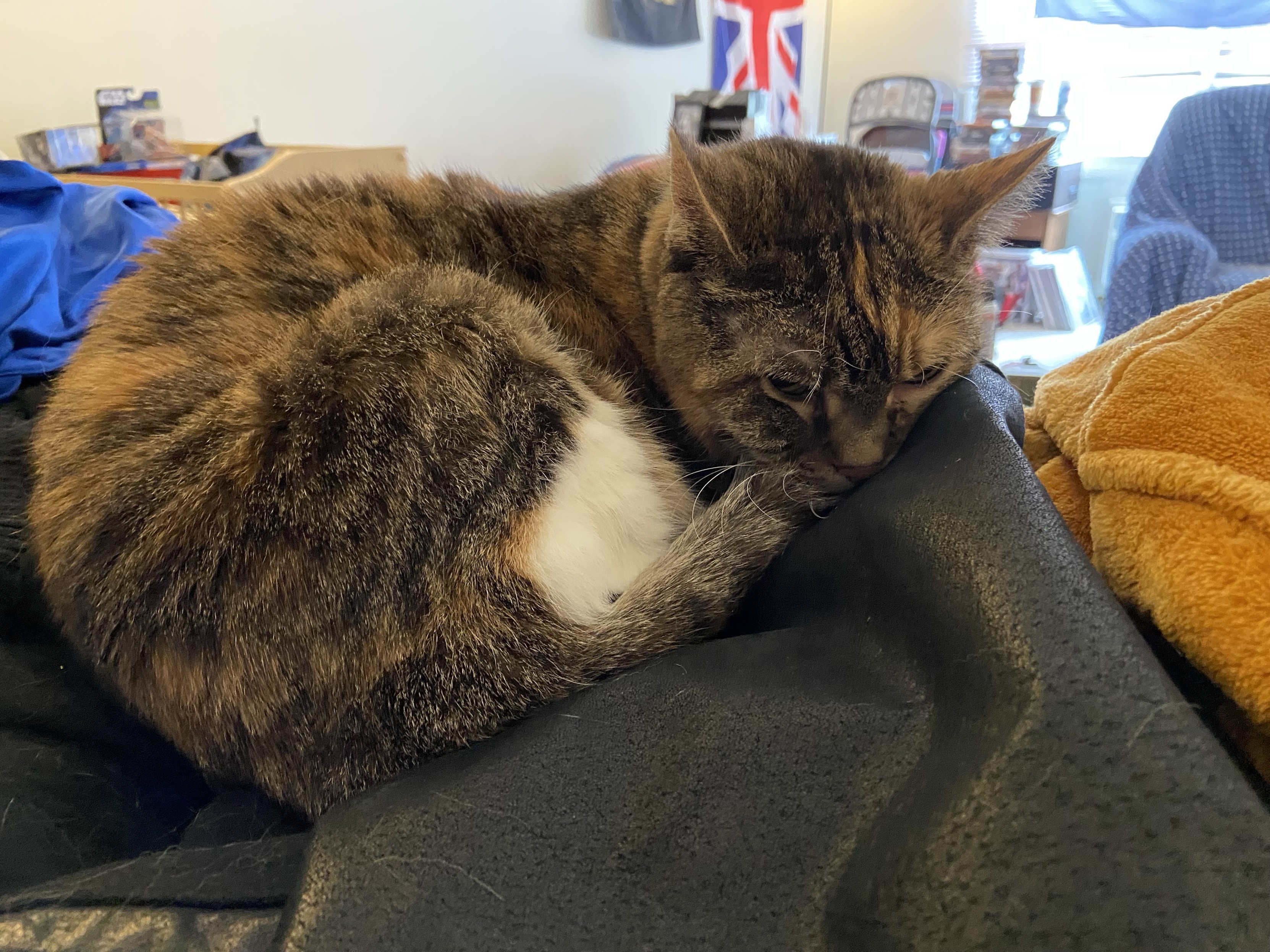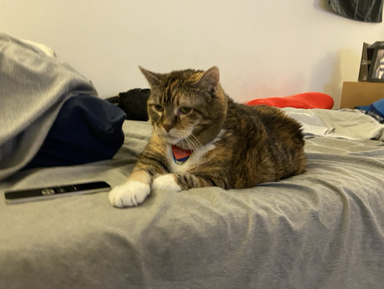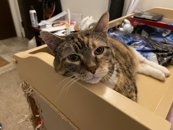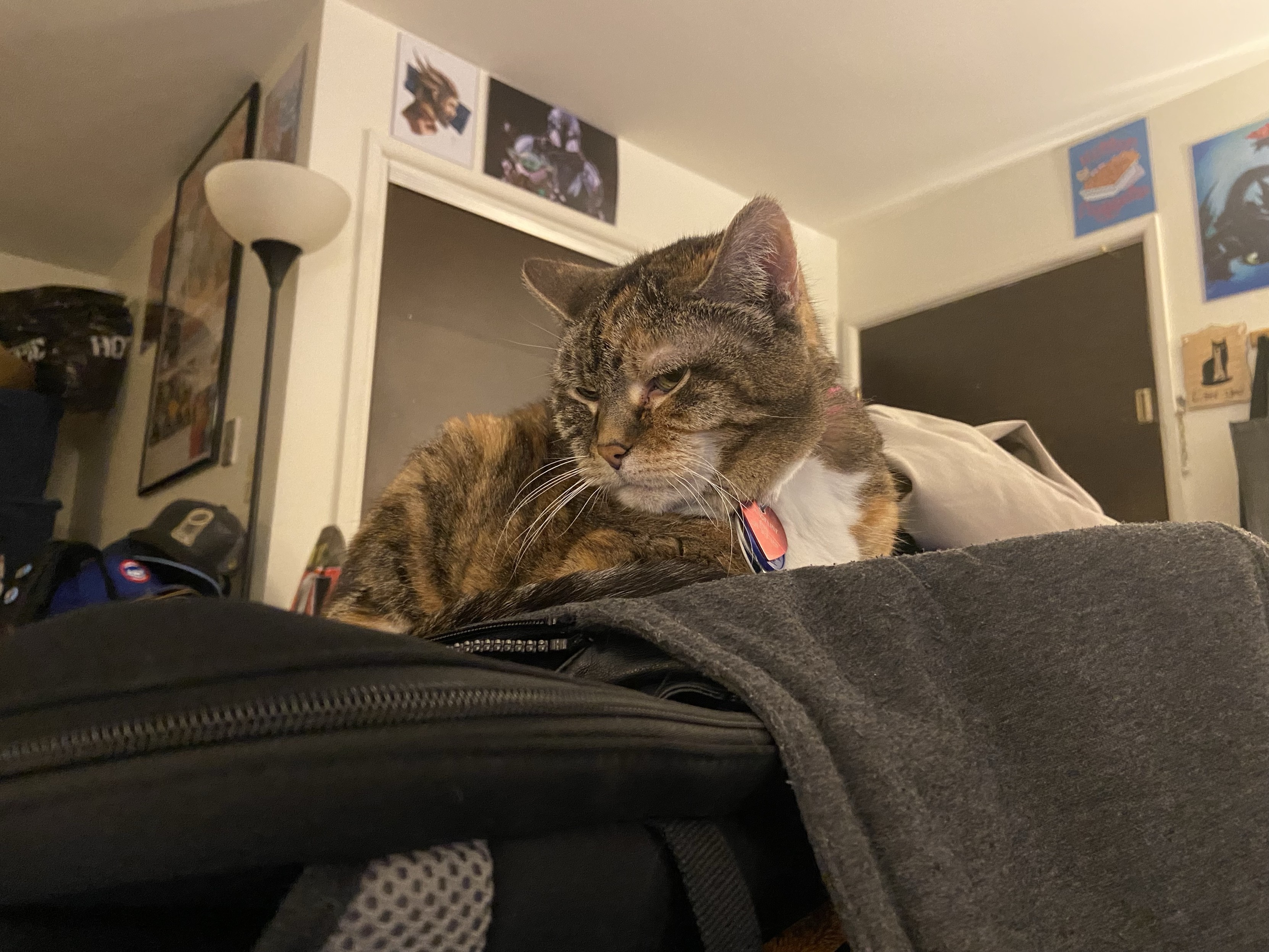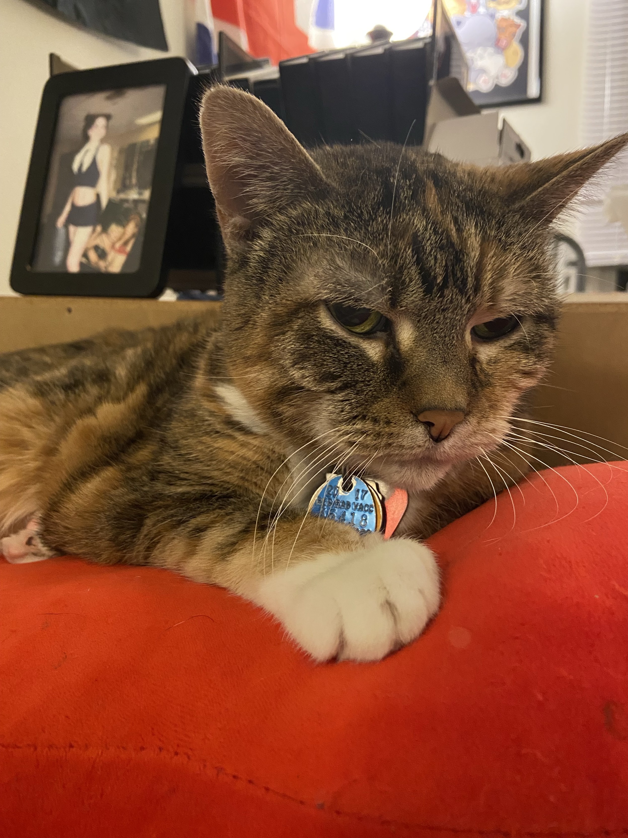 Eva the #QueenKitty from her previous vet visit. Damn the vets were quick to make this 17 year-old #feline a #purrito. This is from about a month ago. I was afraid she’d get upset if she looked over my shoulder as I post these. #cats #queenkitty👑 #felinelove #whiskerweekend #CatsOfMastodon #catsunited #catstodon #catsofthefediverse