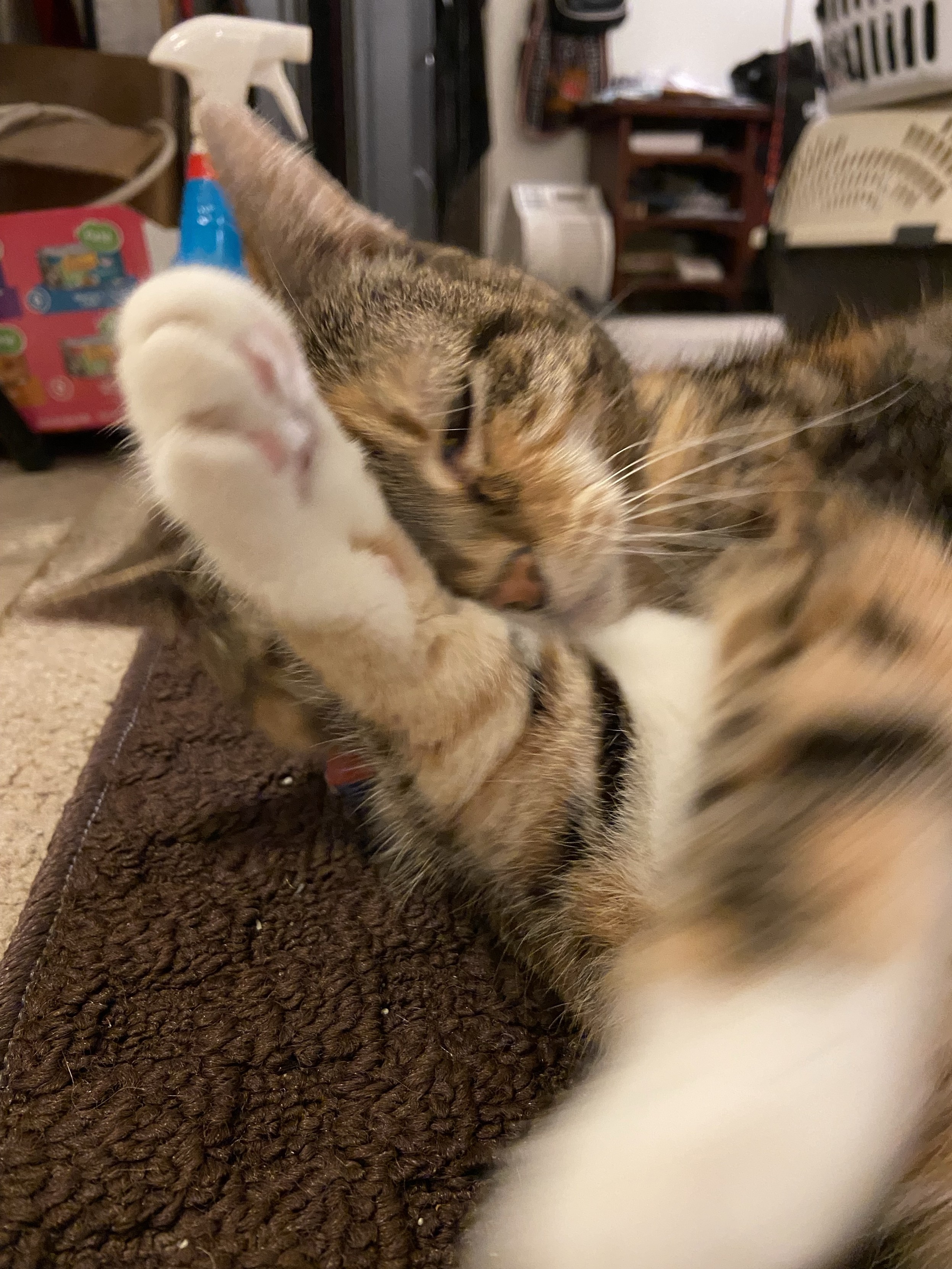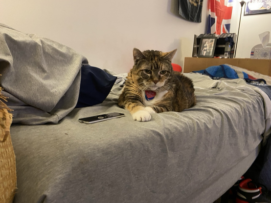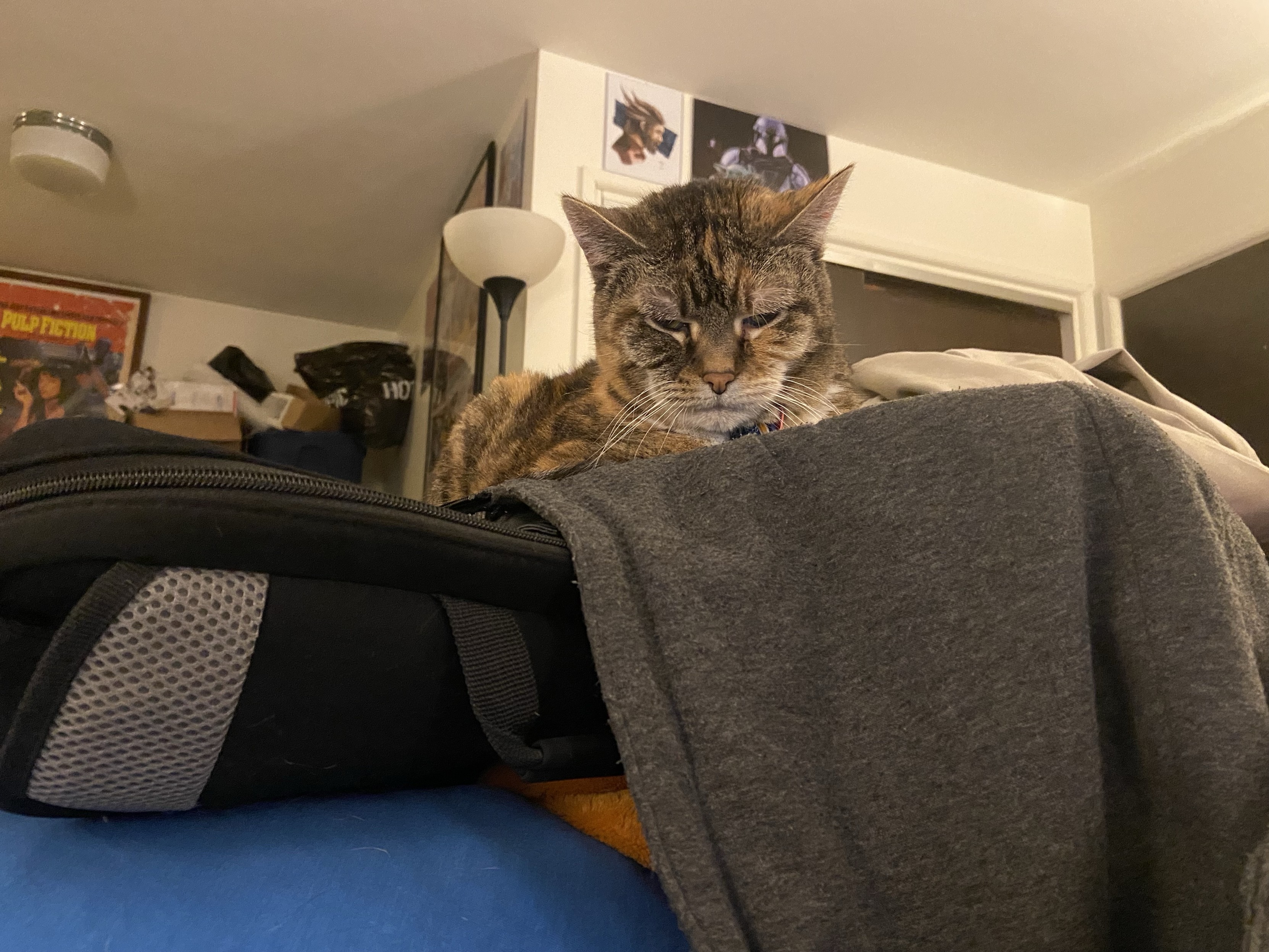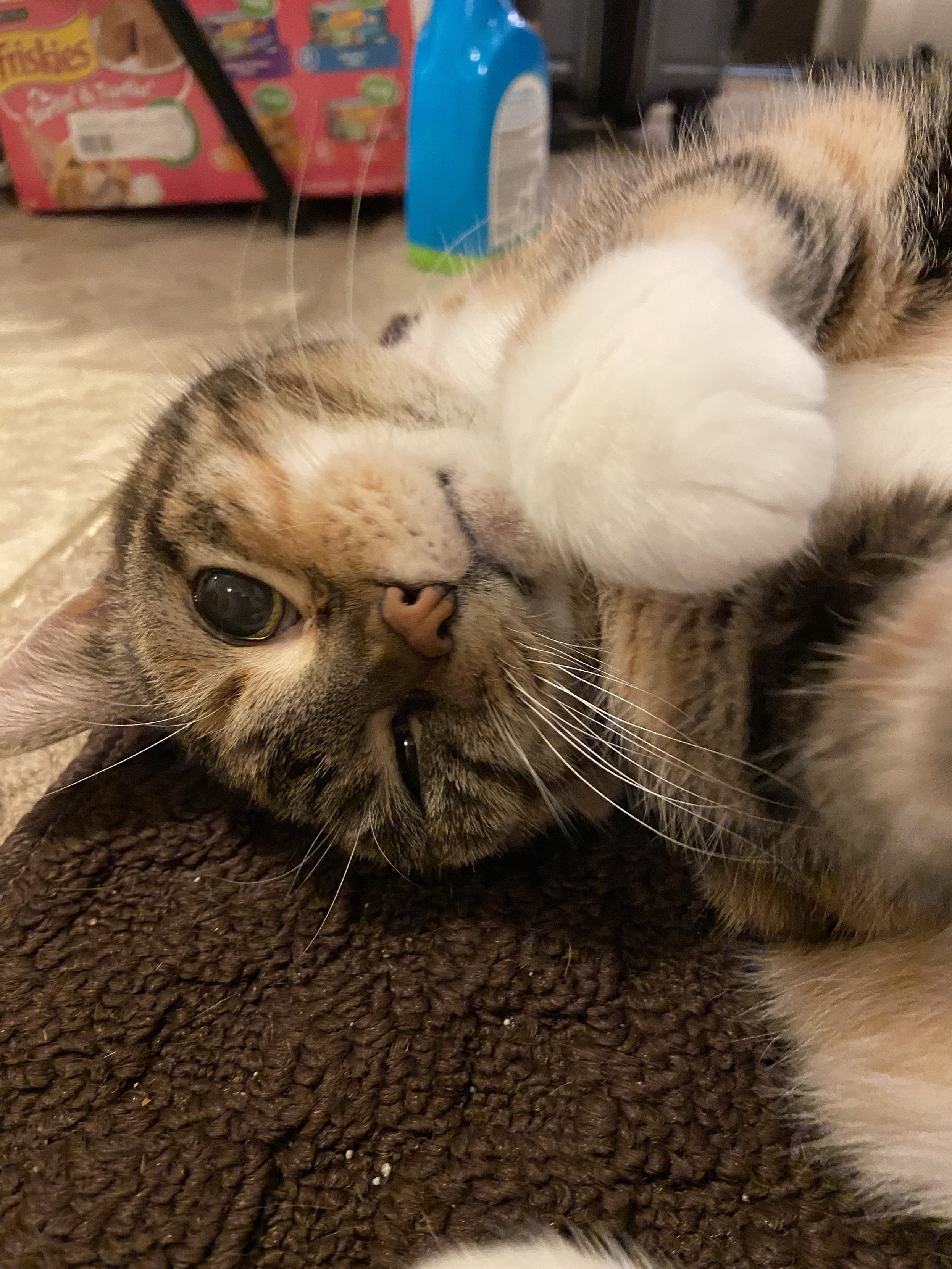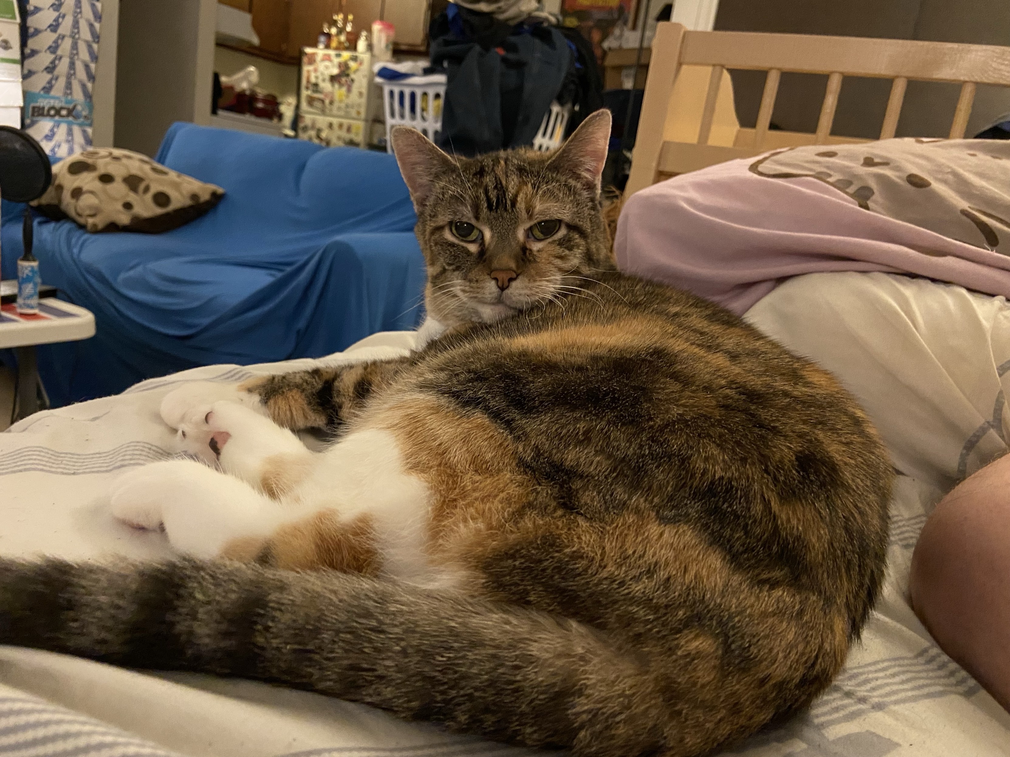 Eva the #QueenKitty from her previous vet visit. Damn the vets were quick to make this 17 year-old #feline a #purrito. This is from about a month ago. I was afraid she’d get upset if she looked over my shoulder as I post these. #cats #queenkitty👑 #felinelove #whiskerweekend #CatsOfMastodon #catsunited #catstodon #catsofthefediverse