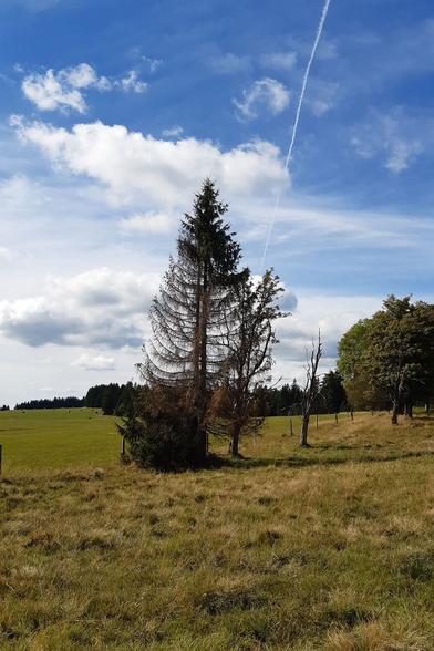 'Einer tanzt immer aus der Reihe!' - wie hier der in der Mitte #FotoVorschlag #AusDerReiheTanzen #Ausnahme #Fotografie #Wiese #Grün #Zaun #Baum #believeinfilm #35mm #Filmfotografie #Olympus #photography #nature