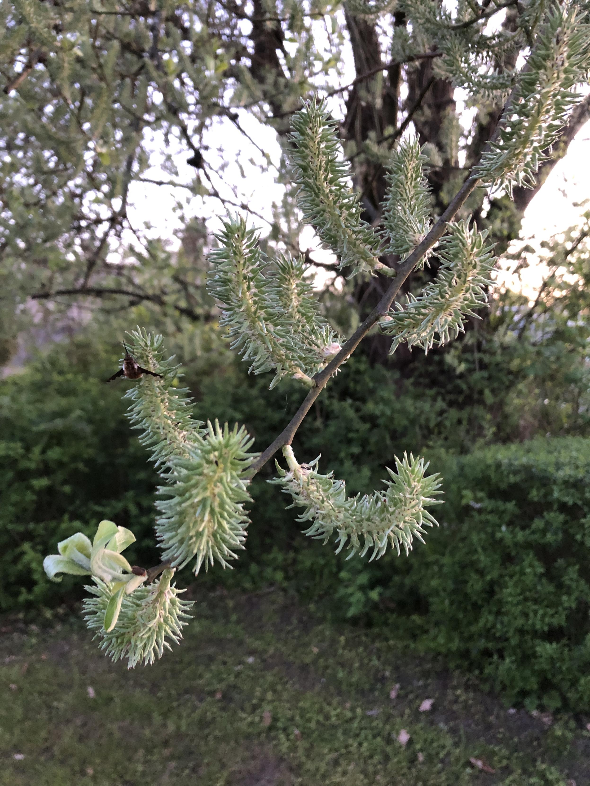 Kleine Fledermäuse, Gezwitscher unter den Bäumen (wie an einem Sommerabend). Trocken, kaum Wind und mild.