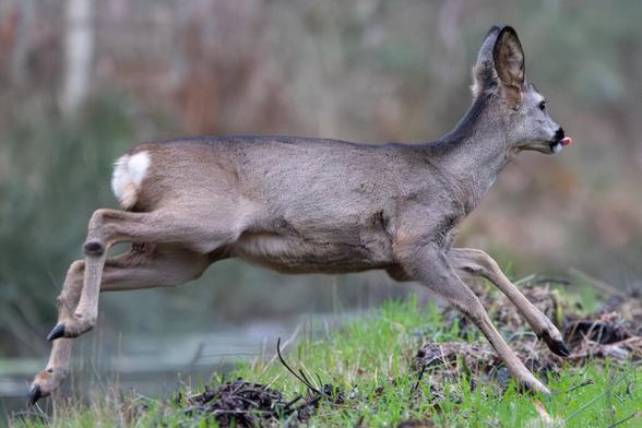 Een hinde en haar kalf moesten niets van de burlende lawaaimaker hebben. Na wat dralen in het struikgewas aan de rand van het veld, staken ze ineens in volle vaart over. Het hert had het nakijken 😄.