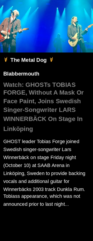 Watch: GHOST's TOBIAS FORGE, Without A Mask Or Face Paint, Joins Swedish Singer-Songwriter LARS WINNERBÄCK On Stage In Linköping