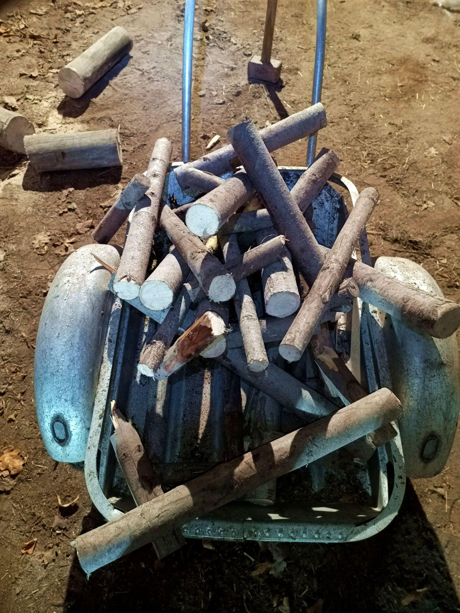 Very satisfying, those last few strokes when the log starts cracking and at the next stroke the wedge sinks in deep.