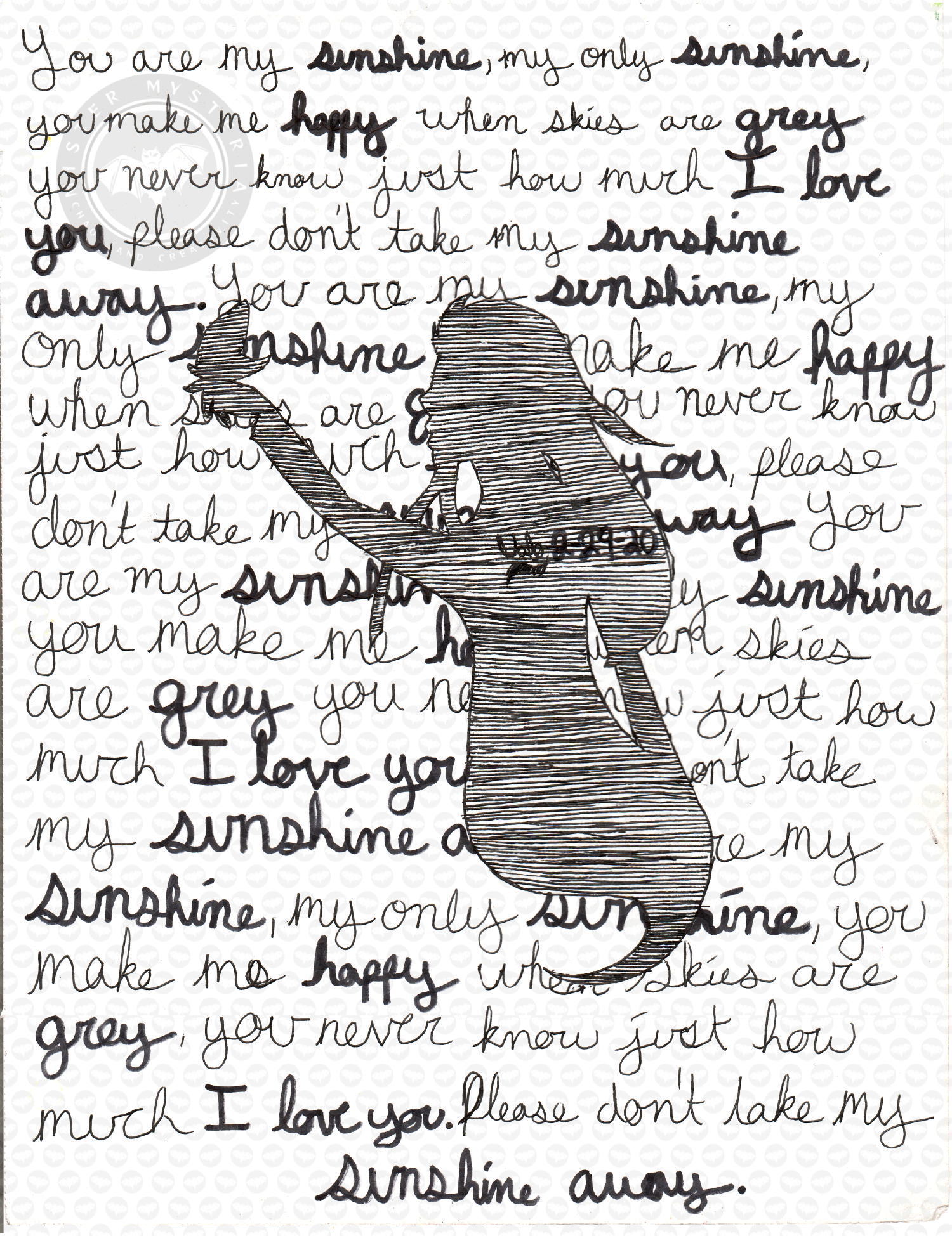 I'd been trying to think of something to draw so that I could have a piece dated 2/29 because of the leap year. This drawing later leads to me hating myself because it inspired all of my other word based arts.