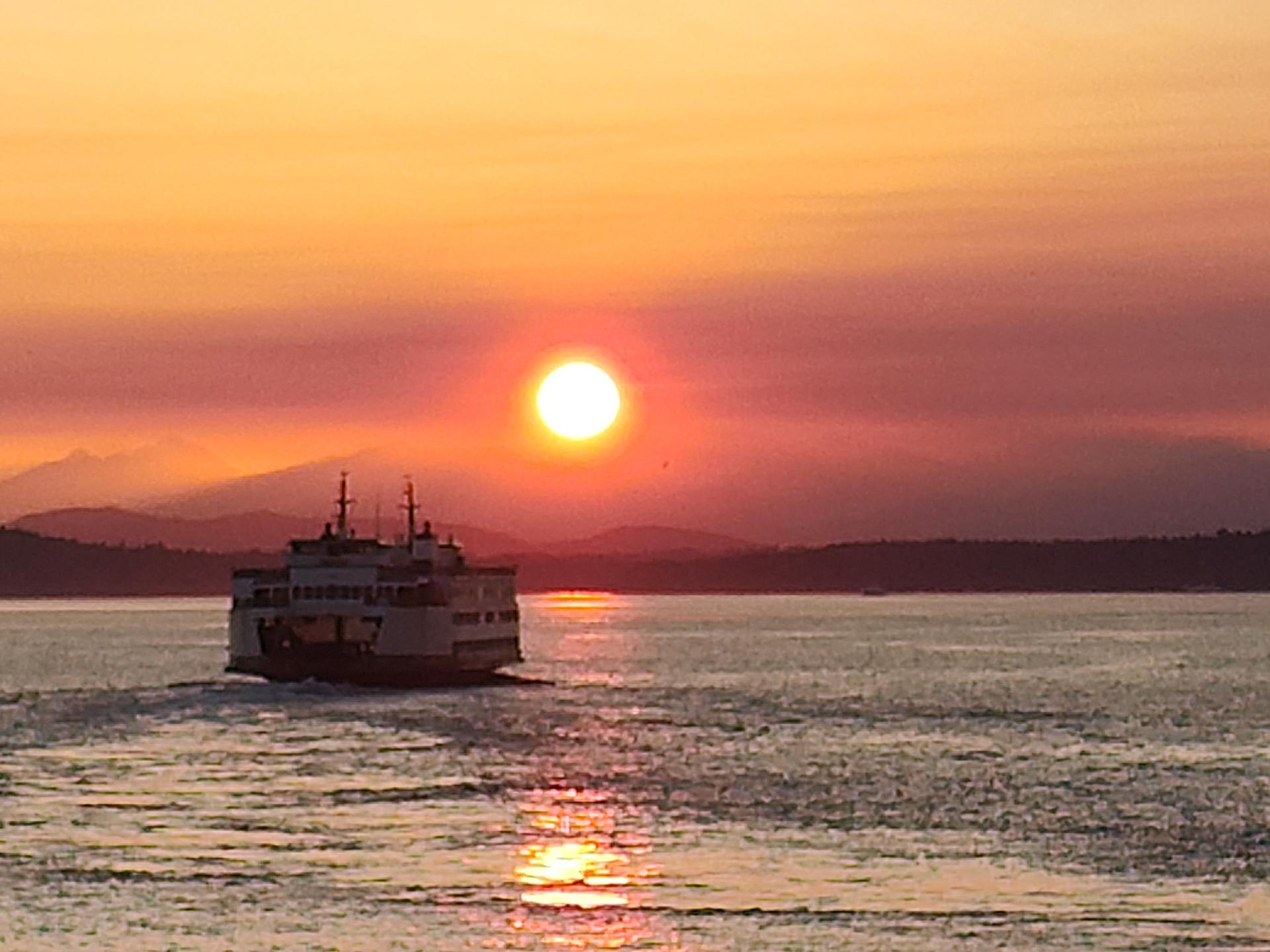 Anyway here's a picture I took yesterday of the sunset and the ferry