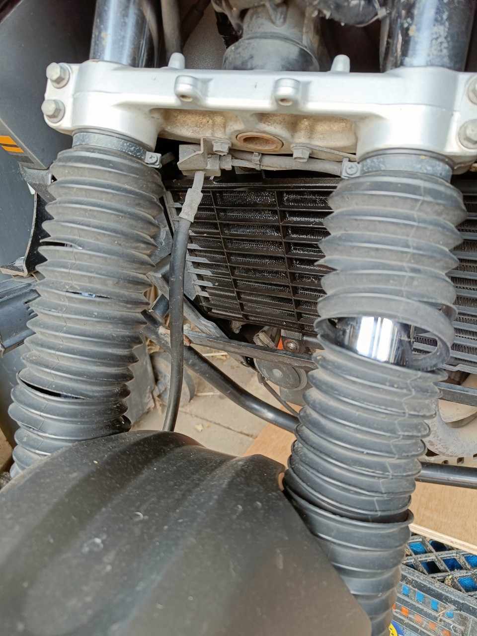 Fresh set of quality rubber fork boots to replace the completely shot cheap, plasticky old fork boots on my #YamahaTenere #XT660Z. #motorcycles #SundayChores