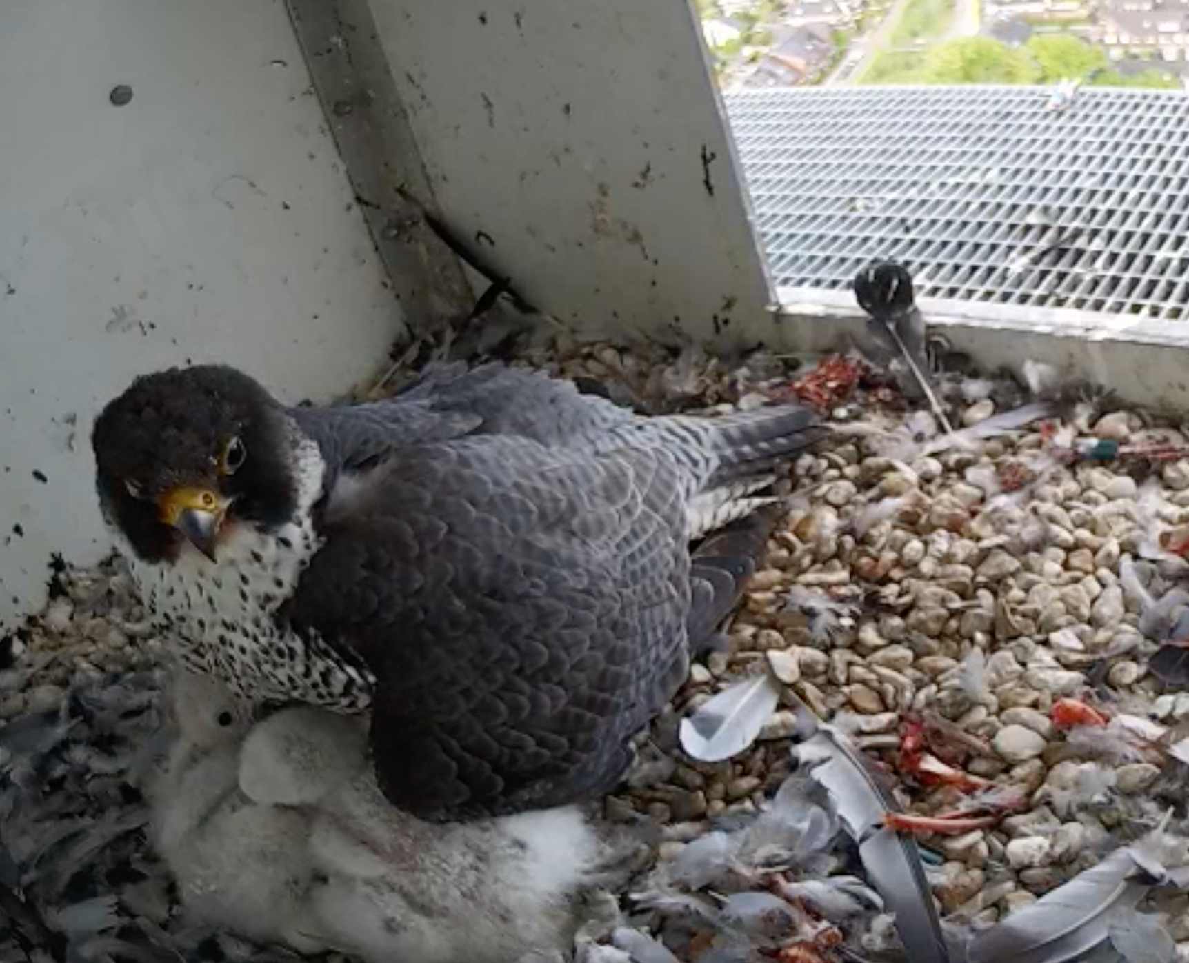 ~moeder slechtvalk houdt haar 4 jonkies